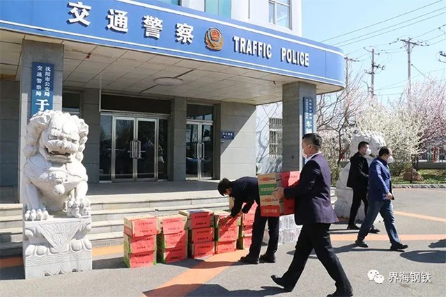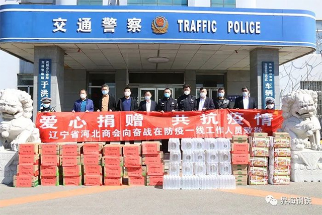 按下暫停鍵20天后,沈陽(yáng)疫情終于趨向平穩(wěn),迎來(lái)了復(fù)工復(fù)產(chǎn),春暖花開(kāi)。 在本輪沈陽(yáng)疫情防控過(guò)程中,交通警察不分晝夜一直守衛(wèi)在各高速公路口和交通要塞,為人民群眾的健康安全保駕護(hù)航。為表達(dá)對(duì)奮戰(zhàn)在防疫一線廣大交警的感謝和誠(chéng)摯敬意,遼寧省河北商會(huì)倡議會(huì)員愛(ài)心捐款,為防疫一線送去溫暖。 身為商會(huì)副會(huì)長(zhǎng)的界海鋼鐵總經(jīng)理郭德海先生更是對(duì)奮戰(zhàn)在抗疫前線的交警勇士們心存敬意,迅速參與到協(xié)會(huì)活動(dòng)中,積極組織、策劃、采買等活動(dòng)籌備等事宜。